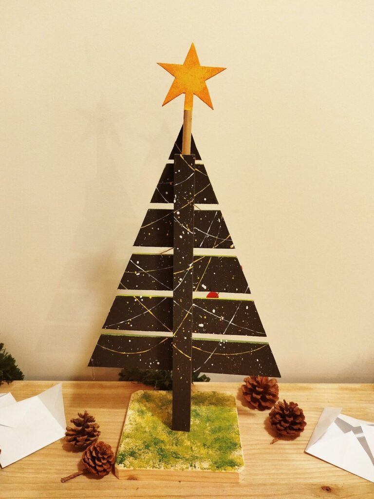 Una peça decorativa moderna, estil minimalista, amb estel superior i base pintada. Ideal per col·locar al menjador o a l’habitació dels infants. Les imatges mostren clarament com queda: un arbre geomètric, net, original i amb un toc artístic.